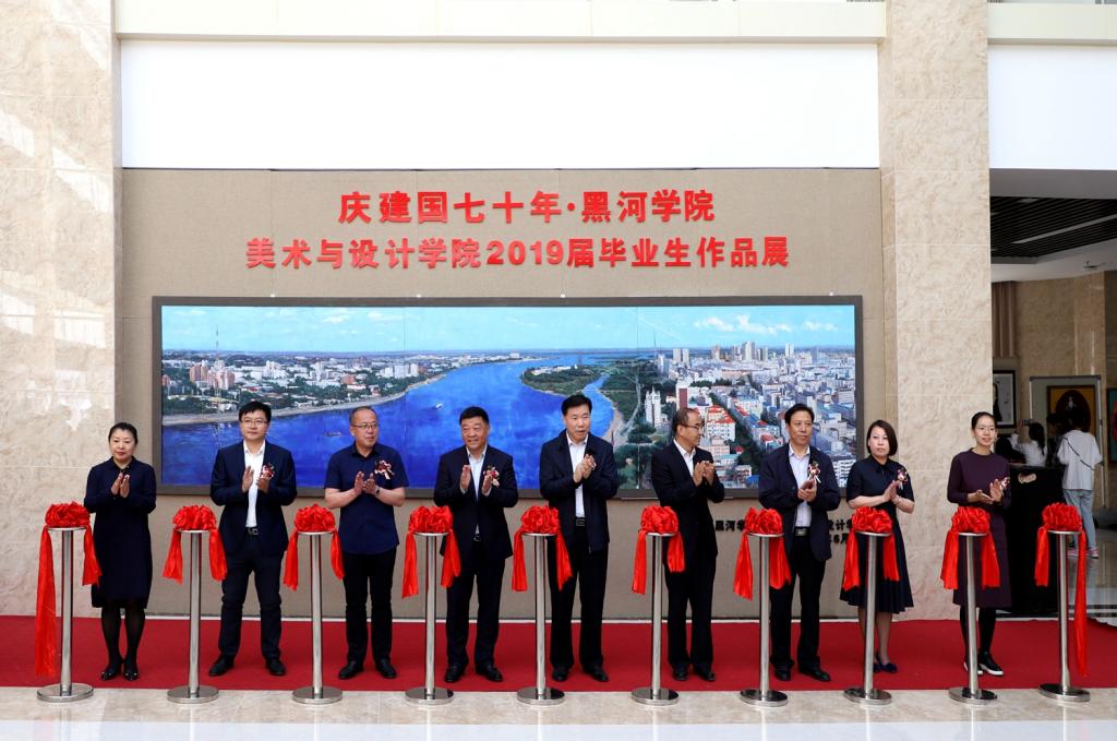 本网讯(实习记者 张瑞芹)为庆祝中华人民共和国成立70周年,6月5日上午,美术与设计学院在新图书馆举办2019届毕业生作品展。校长贯昌福,副校长车永宏、许海深,相关各部门负责人出席开幕式。