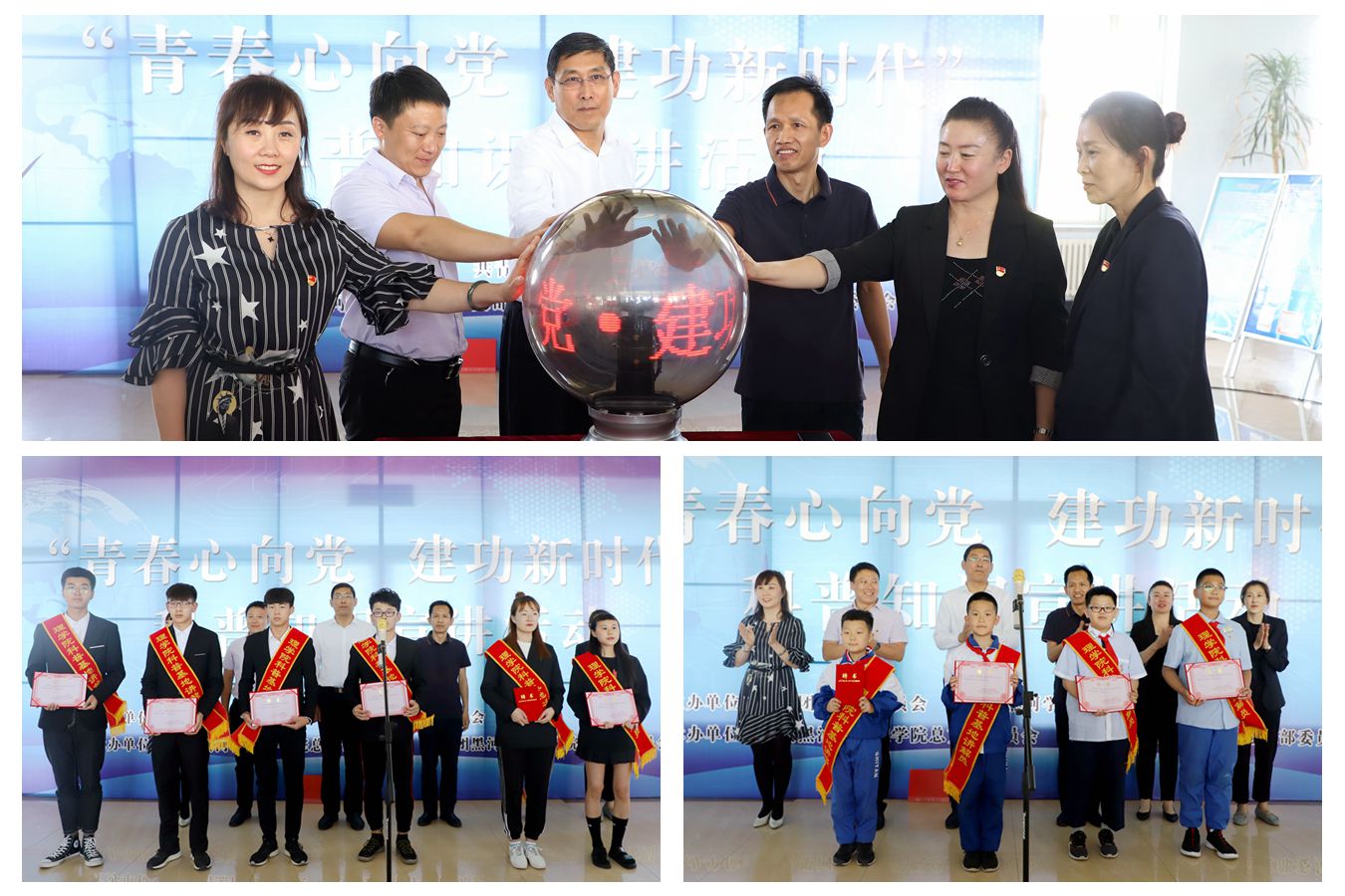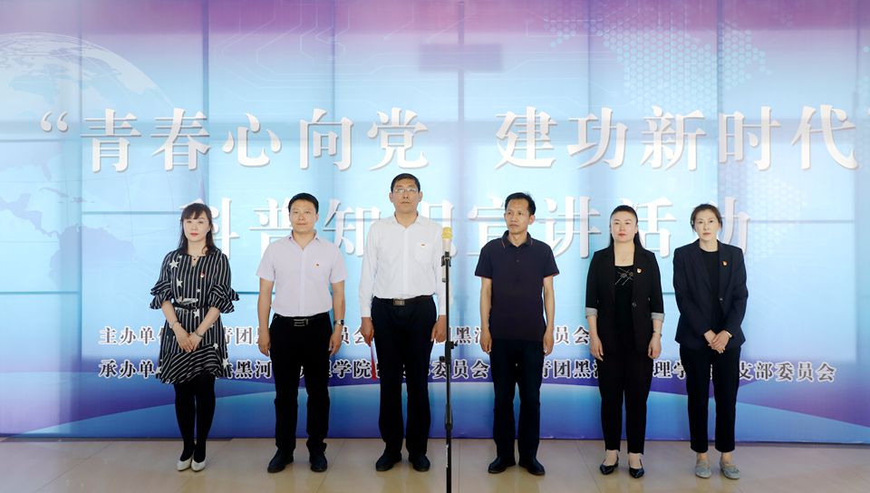 本网讯(特约记者 梁云婴 陈佳明)6月5日,由黑河团市委和我校共同主办的“青春心向党 建功新时代”科普知识宣讲活动在我校探知楼大厅举行启动仪式。黑河团市委副书记孙建龙、工业信息科技局副调研员周金辉,副校长张焕强及校团委、理学院负责人与黑河市实验小学40名优秀少先队员代表、我校理学院科普志愿者参加了活动。