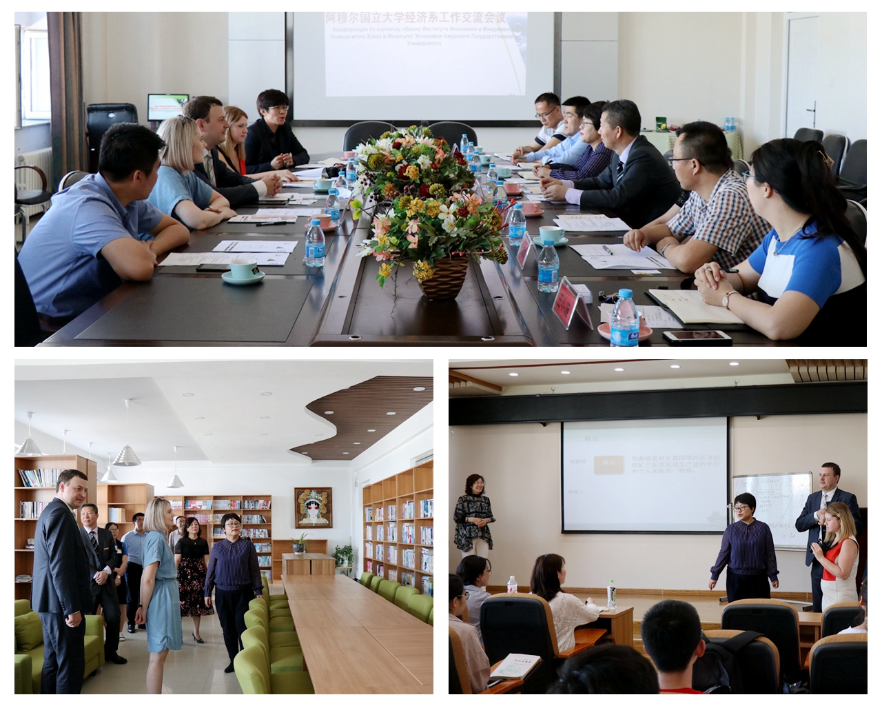 6月5日下午,黑河学院副校长丛喜权、经济管理学院院长谢慧及相关负责人与阿穆尔国立大学经济系主任采佩列夫·奥列格一行在求知楼B505会议室召开工作交流会议,就联合主办2019年第四届国际青年经济论坛、组建中俄联合科研团队、开展国际交流、联合培养人才等事宜展开探讨,并达成共识,进一步深化了学校与阿穆尔国立大学在经贸领域进行科学研究、人才培养等方面的合作,是中俄双方在教学科研领域开展合作的又一突破。