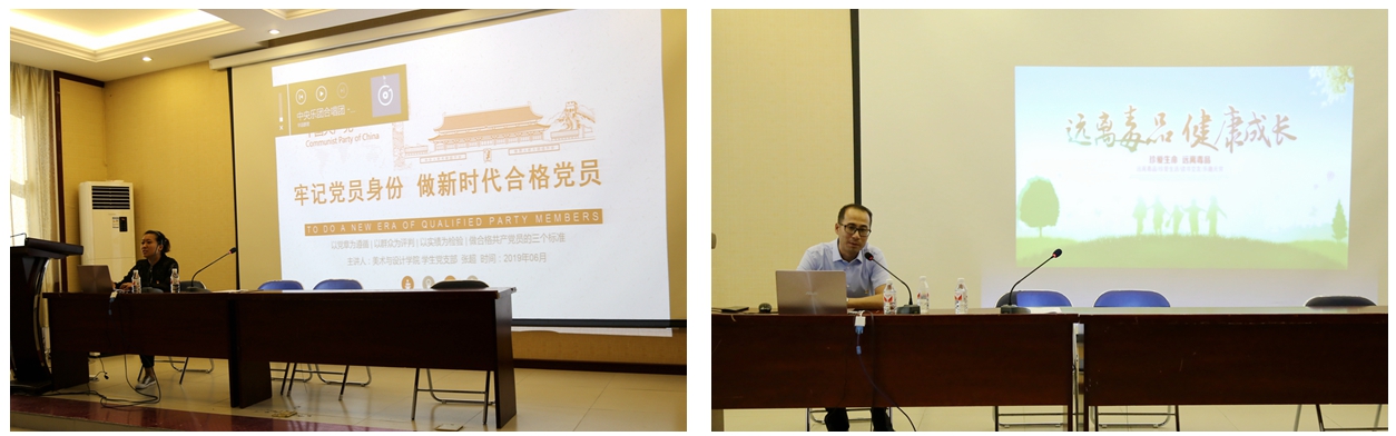 奏唱国歌,重温誓词。毕业生党员从牢记党员身份的重要性、做合格共产党员的标准、如何成为合格党员等方面聆听了美术与设计学院党总支学生党支部书记张超作的“牢记党员身份 做新时代合格党员”主题报告;从了解毒品种类、成瘾性、危害等多方面学习了理学院党总支学生党支部书记刘宇飞作的“远离毒品 健康成长”禁毒科普知识讲座。教师们在党课上勉励毕业生党员要树立回望初心、坚守真心、锤炼匠心、愉悦身心“四颗心”意识,做身体健康、品德高尚、意志坚定的新时代青年党员。