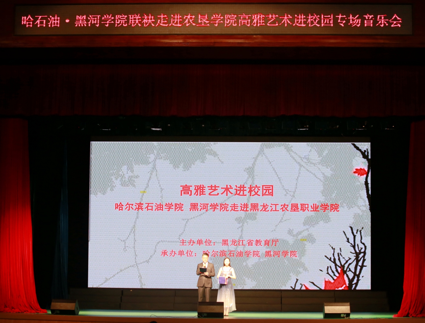 本网讯(学生记者 宋国旺)6月10日,黑河学院2019年高雅艺术进校园演出在黑龙江农垦职业学院举行。八百余名观众共享艺术盛宴。
