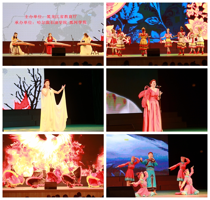 演出在歌曲《嫩水渔歌》中拉开序幕,一曲饱含达斡尔人民深情的旋律瞬间点燃全场观众热情;舞蹈《吉普赛舞》《俄罗斯的夏天》、二胡独奏《流浪者之歌》、女声独唱《一首桃花》《我的心如花绽放》等节目,赢得在场观众的热烈掌声,展示了我校中俄合作办学的丰硕成果;器乐重奏《长白山歌》、木管五重奏《桔梗谣》、大堂鼓合奏《鼓威》等节目,将整场演出带入一个又一个高潮;演出在两校共同完成的歌曲《共筑中国梦》中圆满落下帷幕。