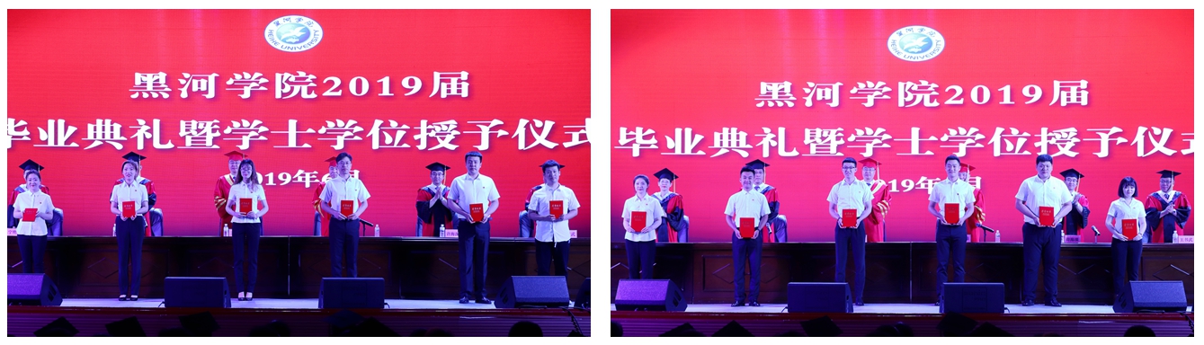 典礼在雄壮的国歌声中拉开序幕。副校长张焕强宣读黑河学院2019届优秀实习生名单和优秀毕业生党员名单;副校长许海深宣读2019届本科毕业生名单和学士学位授予名单,2316名学生顺利毕业,2312人被授予学士学位;校长贯昌福宣读毕业证书、学士学位证书,并为毕业生代表拨流苏;与会校领导为各学院毕业生代表颁发了毕业证书、学位证书、获奖证书。