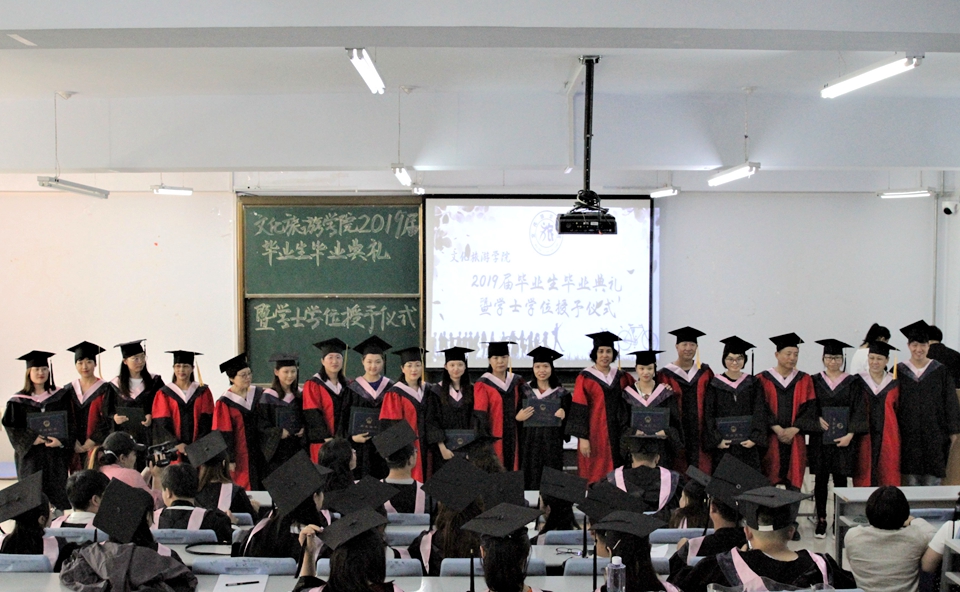 6月21日,文化旅游学院2019届毕业生毕业及学士学位授予仪式在求知楼B306举行。文化旅游学院院长潘华宣读了2019届毕业生毕业证书和学位证书并为毕业生送去真挚的祝福和嘱托;教师李茂慧、2015级社会工作专业学生孙金榜、2017级旅游管理专业学生张琦也分别代表全体教师、2019届全体毕业生和在校学生分别表达了对毕业生的惜别之情、对母校的感激之情和对毕业学长学姐的祝福之情。会上,学业导师为毕业生代表们拨正流苏,颁发了毕业证书和学位证书。