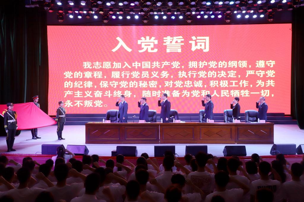 在新党员宣誓、老党员重温入党誓词中,75名新党员和全体老党员面向党旗,举起右手,庄严宣誓,表达了对党忠诚、为共产主义事业奋斗终身的决心。