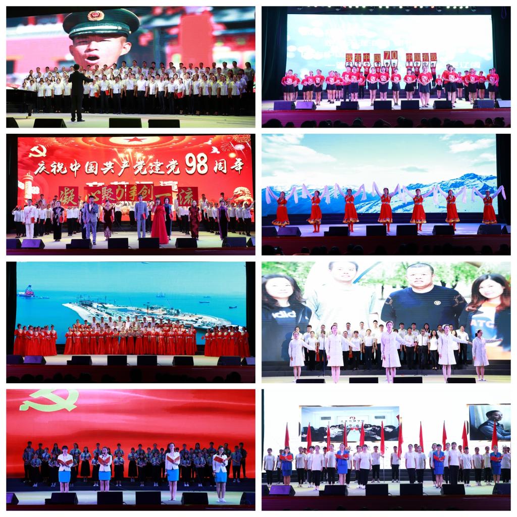 会后,举行了“不忘初心 砥砺前行”庆祝中国共产党建党98周年文艺汇演。师生们在“光荣的岁月”“共筑中国梦”“新时代赞歌”三个篇章中,载歌载舞,用悦耳动听的歌曲和欢腾奔放的舞蹈,讴歌党的辉煌成就,展示学校发展成果,展现师生员工积极向上的精神风貌。合唱《没有共产党就没有新中国》《歌唱祖国》《阳光路上》《我们走在大路上》《走进新时代》等一首首催人奋进的歌曲,铿锵有力地表达了北疆学子对中国共产党的热爱和对实现中国梦的向往;在配乐诗朗诵《七月的印迹》《近一个世纪的回响》《辉煌的征程》《读中国》铿锵有力的朗诵声中,师生们用饱满的精神和抑扬顿挫的语调诉说着对党、对祖国深深的热爱和美好的祝福;舞蹈《雪山姑娘》、手势舞《中国有我》、表演唱《感恩的心》、歌曲《共筑中国梦》、歌伴舞《不忘初心》等节目,或热烈奔放,或意蕴悠长,讴歌了神州大地发生的巨大变化,展现出师生对党、对祖国、对美好未来的无比热爱,整场朗诵会,高潮迭起,引人入胜。晚会在女声小合唱《我和我的祖国》的热烈气氛中落下帷幕。