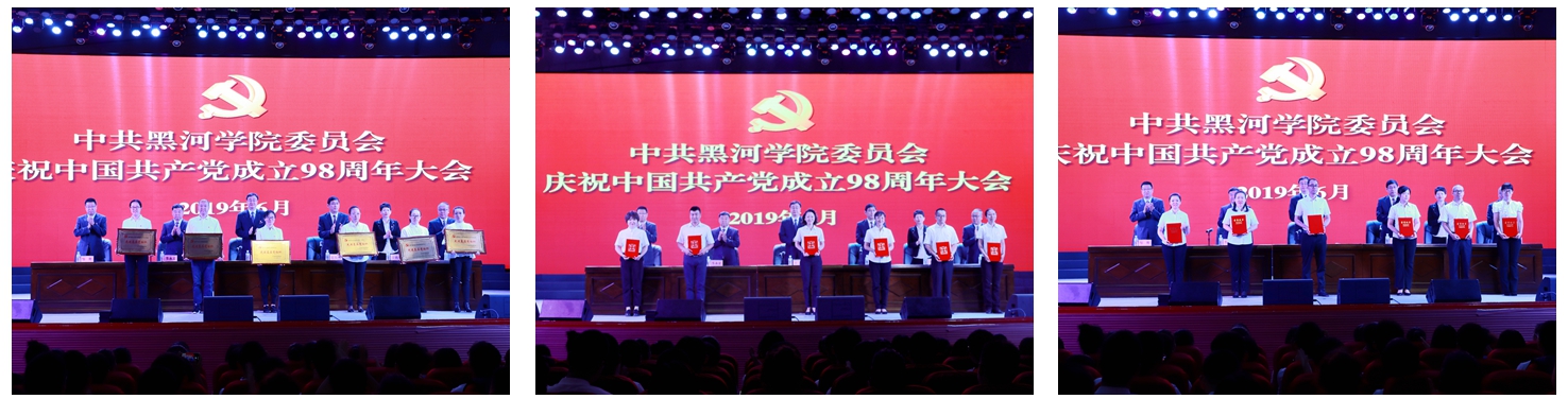 大会在庄严的国歌声中拉开帷幕。党委委员、副校长车永宏宣读了中共黑河学院委员会关于表彰“先优”的决定。学校党委授予外国语学院党总支等6个单位“先进基层党组织”荣誉称号,授予曹福全等38名同志“优秀共产党员”荣誉称号,授予张大春等6名同志为“优秀党务工作者”荣誉称号。校领导为受表彰的集体和个人颁奖。