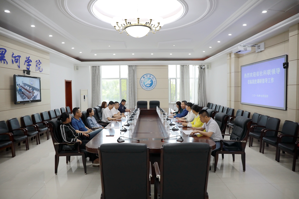 副校长丛喜权代表学校对调研组一行的到来表示欢迎,对省社科联长期以来对学校发展建设给予的支持与帮助表示感谢。宁艳红同志代表省旅俄华侨历史文化学术交流基地和省旅俄华侨华人研究会、孟繁红同志代表省中俄历史与文化学术交流基地、戈秀兰同志代表黑河学院社科联分别作了建设情况汇报。