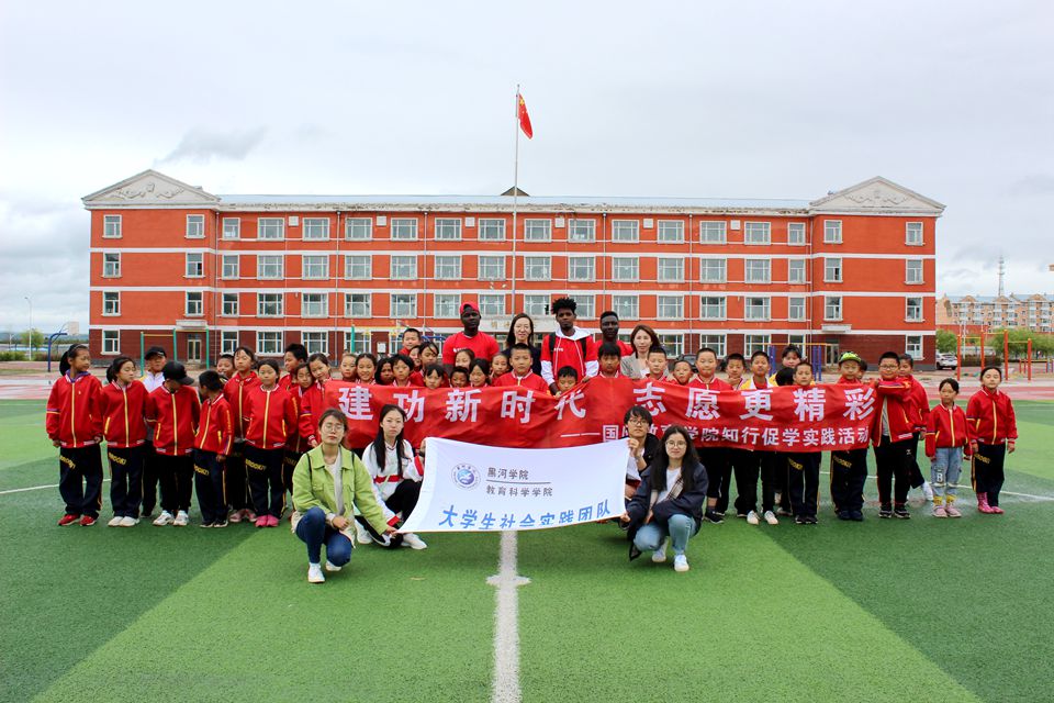 本网讯(特约记者 王井荣 梁云婴)7月5日,国际教育学院留学生与教育科学学院师生一行10人走进罕达汽山区小学课堂,开展“建功新时代 志愿更精彩 关爱留守儿童”社会实践活动,为留守儿童带去爱和温暖。