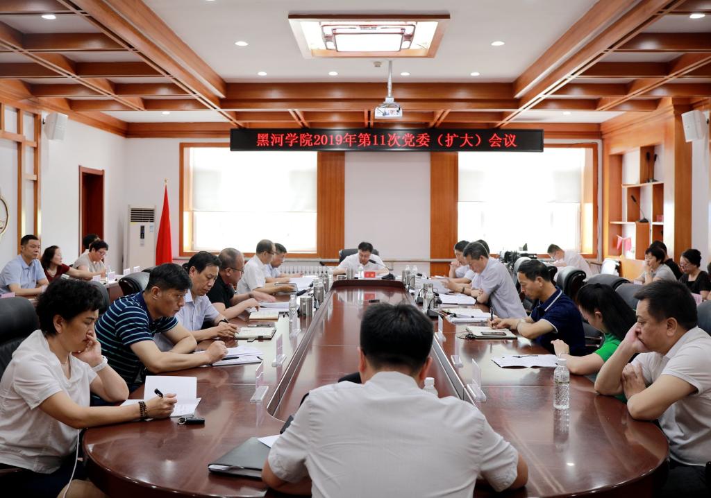 本网讯(记者 关月)7月11日,学校在明德楼三楼会议室召开2019年第十一次党委(扩大)会议暨党委理论学习中心组第八次学习会议。党委领导班子成员,各学院院长、党总支书记,各部门负责人参加会议。