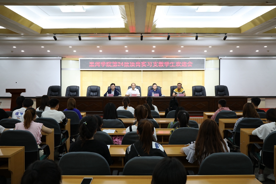 本网讯(实习记者 葛艳宇)8月30日下午,学校在明德楼五楼多功能厅举行第二十四批顶岗实习支教欢送会,49名学生将前往黑河市各县(市、区)和部分农场的中小学开展顶岗实习支教。黑河市教育局副局长黄凤来,我校副校长许海深、顶岗实习支教驻县教师及支教学生参加欢送会。会议由教务处处长高孝成主持。