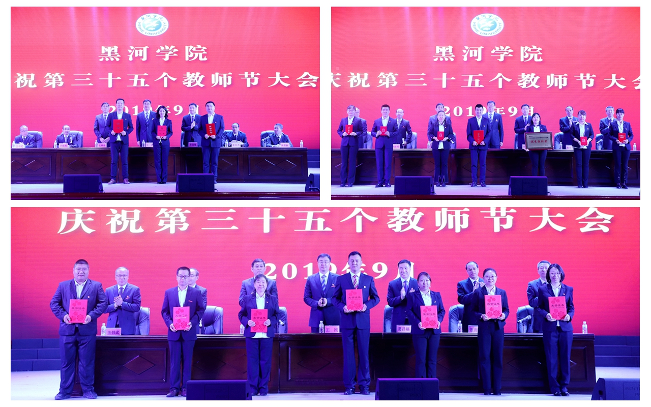 会上,纪委书记董贵杰宣读荣获国家级表彰的人员名单,副校长许海深宣读荣获省级表彰的人员名单,副校长丛喜权宣读荣获市、校级表彰的人员名单,校领导为获奖单位和教师代表颁发证书并合影留念。