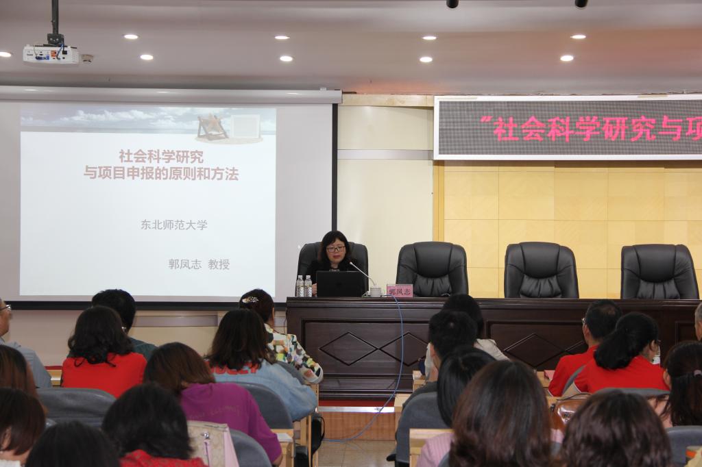 郭凤志教授以社会科学研究与项目申报的原则和方法为主题,结合自身多年科研工作经验,针对申报和研究国家课题的基本理念、成功申报的基本要素和重要原则、申报书论证的技巧和方法等问题进行了详细阐释,并对与会教师关于科研项目申报的疑难问题进行了具有针对性的详细解答。