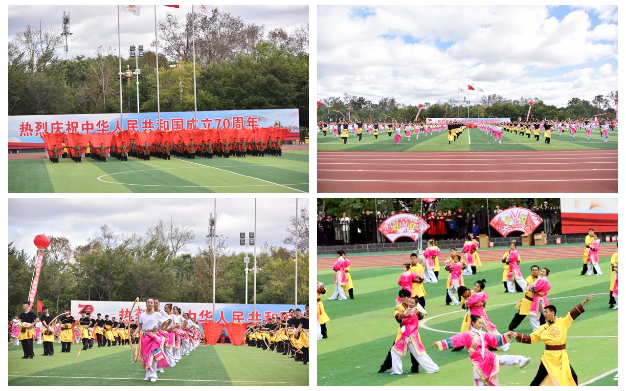 本网讯(记者 赵宇 摄影 贾春杨)9月9日,黑河市全民健身中心体育场欢声雷动,一派欢腾,以“我和我的祖国”为主题的黑河市第六届运动会开幕式在这里隆重举行。我校副校长车永宏应邀出席了开幕式,由我校400名学生组成的代表队参加了开幕式团体操表演。