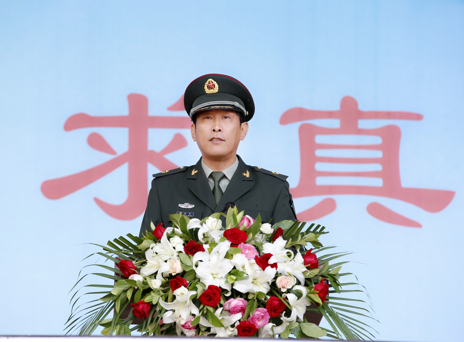 伴随着嘹亮的国歌声,五星红旗冉冉升起,大会正式开始。党委副书记张焕强代表全校师生员工对承担我校军训工作的中国人民解放军32110部队的领导和教官们表示感谢,他指出,即将开始的军训是大学生活的第一课,是国家人才培养和加强国防后备力量建设的基础工程,也是同学们增强身心素质、磨练坚强意志的一次难得机遇。他希望同学们要提高认识,端正态度,以饱满的精神和高昂的士气投入到军训中;从思想上、行动上以一个军人的标准严格要求自己,吃苦耐劳,经受锻炼,发扬优良传统和作风;严守纪律,争当模范,增强文明修养的自觉性,进一步为保持和发扬我校“明德、笃学、励志、求真”的优良学风和校风做出努力;学校各相关部门要精心组织、通力协作,承训官兵要严格施教,履职尽责,确保军训工作圆满完成。他强调,2019年是新中国成立70周年,希望同学们学习、发扬人民军队的光荣传统和优良作风,展示当代大学生勃勃生机和奋发向上的精神风貌,高标准、高质量地完成军训的各项任务,以出色的表现和优异的成绩向五星红旗致敬,向伟大祖国献礼。