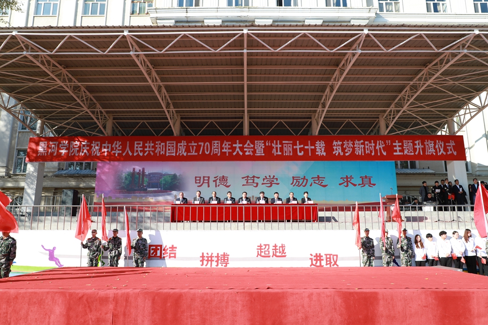 王刚书记指出,在即将迎来中华人民共和国成立70周年这一伟大的时刻,让我们紧密团结在以习近平同志为核心的党中央周围,在习近平新时代中国特色社会主义思想的指引下,不忘初心、牢记使命,开拓进取,勇于拼搏,厚植家国情怀,勇担时代重任,为建设黑河学院更加美好的明天,手拉手、肩并肩,高高扬起中国航船的风帆,朝着中华民族伟大复兴的光辉彼岸继续破浪前进。