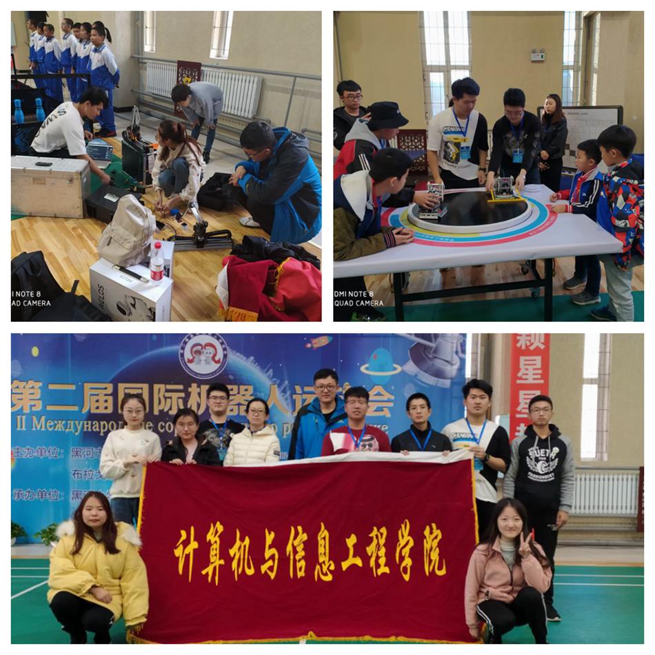 10月29日,应黑河市教育局、黑河小学邀请,我校计算机与信息工程学院于光华、李岩老师带领9名学生到黑河小学为第二届国际机器人运动会担任裁判。比赛开始前,我校师生们首先进行了机器人表演,机器人完美地完成各项指令,让现场所有观众都沉浸在科技与艺术的完美融合之中。大赛共吸引了来自中俄两国12支队伍参加,我校师生在赛场上对大赛进行了公平公正的裁判,并对机器人编程进行了指导和展示,为中俄两国小队员们留下了深刻的印象,为服务地方教育作出了积极贡献。