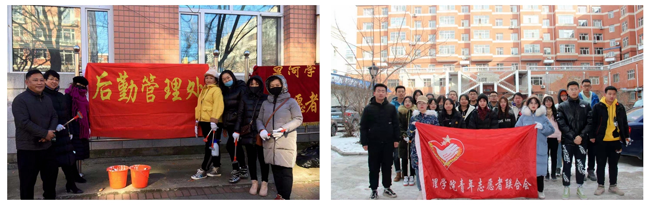 本网讯(特约记者 马宝发 摄影 刘韵狄)为积极响应黑河市“文明黑河-你我同行”志愿服者活动,弘扬“奉献、友爱、互助、进步”的志愿服务精神,推动黑河全国文明城市创建达到新高度,11月3—9日,校团委、后勤管理处、工会、体育学院、音乐学院、经济管理学院、人文传媒学院、理学院、继续教育学院教职工及学生代表350名志愿者,深入到信德华苑、宏志、保健嘉苑等五个小区开展为期一周的环境卫生集中清扫活动,以实际行动践行志愿服务、助力全国文明城市创建。