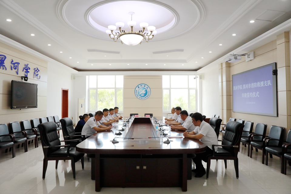 本网讯(记者 赵宇)为加强双方合作,实现优势互补,经双方协商,8月10日,我校在明德楼二楼会议室举行黑河学院与黑河市消防救援支队共建签约仪式。校长贯昌福、副校长车永宏、许海深,黑河市消防救援支队支队长徐明军、政委王锡清、政治部主任曲焕猛及合作区消防救援大队和学校相关部门负责人参加签约仪式。