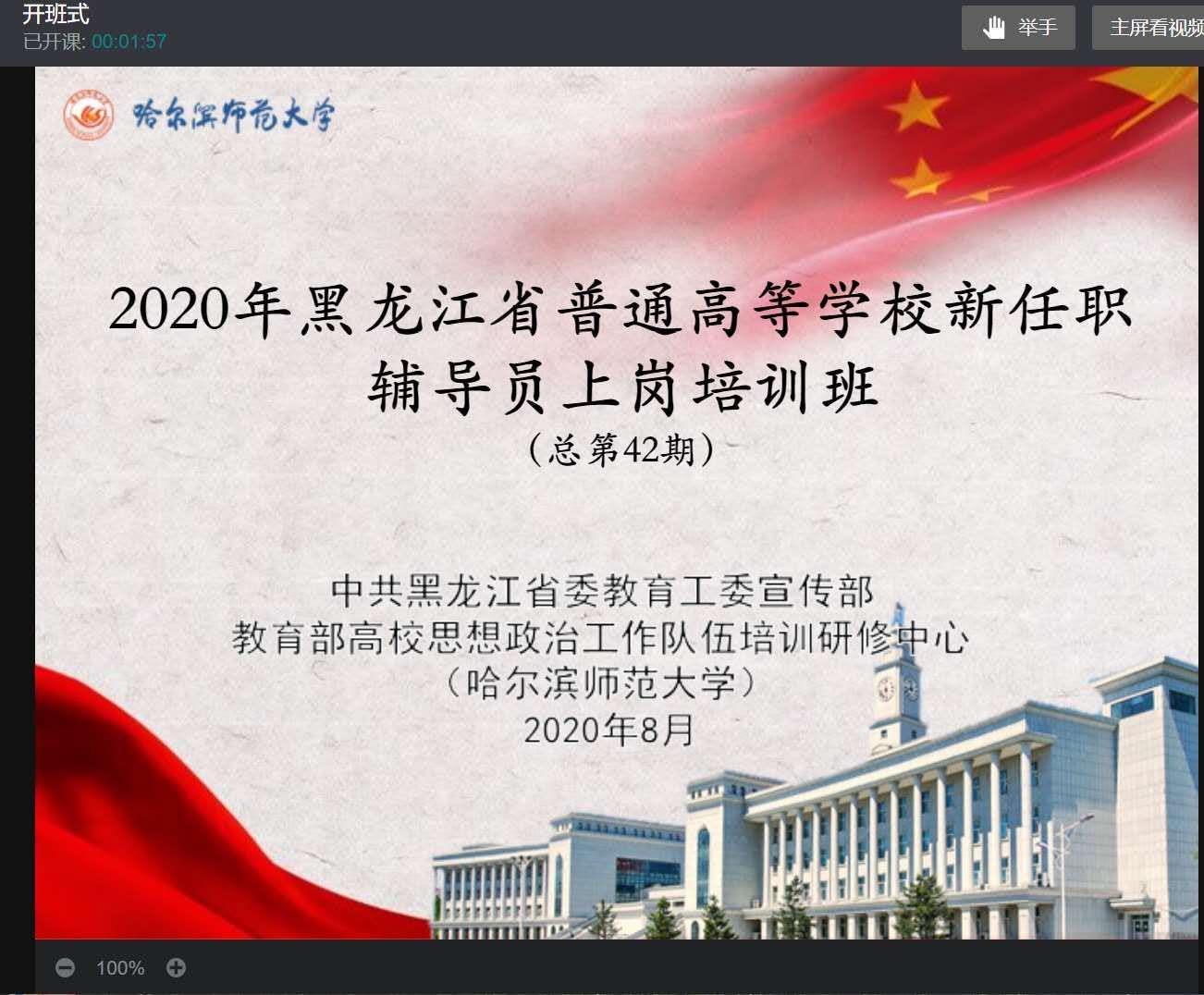 本网讯(特约记者 王平)8月19—23日,2020年黑龙江省普通高等学校新任职辅导员上岗培训班如期在线上举行。我校学生工作部组织6名新入职辅导员参加培训。