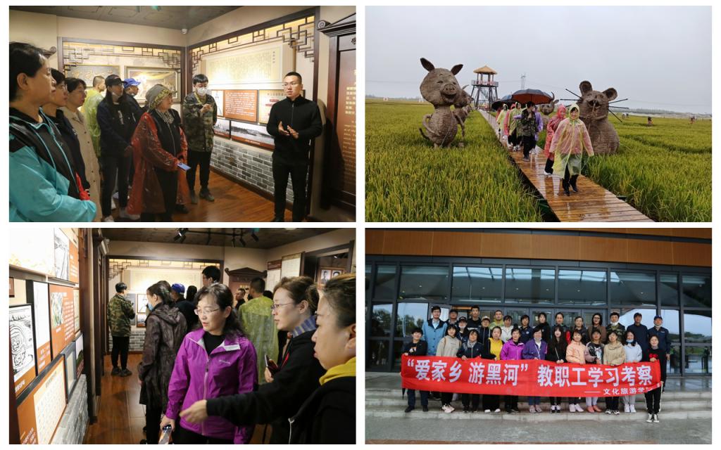 活动当天,尽管天空阴雨绵绵,但丝毫没有影响大家感受家乡发展变化的迫切心情。教职工们先后前往西岗子稻田公园,了解我市现代农业的发展;瑷珲郭氏家族馆,一起探访时代的记忆;中国瑷珲国际汽车营地,观赏沿途万亩向日葵花海,感受原生态和人文景观的有机结合;黑龙江大桥观光区,领略黑龙江及两岸风光;中俄民族风情园观摩,体验欧式的浪漫风情,欣赏异域的文化艺术。大家纷纷表示,作为一名高校教师,要结合自身专业,不忘教师初心,牢记教育使命,强化履职,甘于奉献,以实际行动为第三届黑龙江省旅游产业发展大会、为黑河市经济社会发展贡献力量。