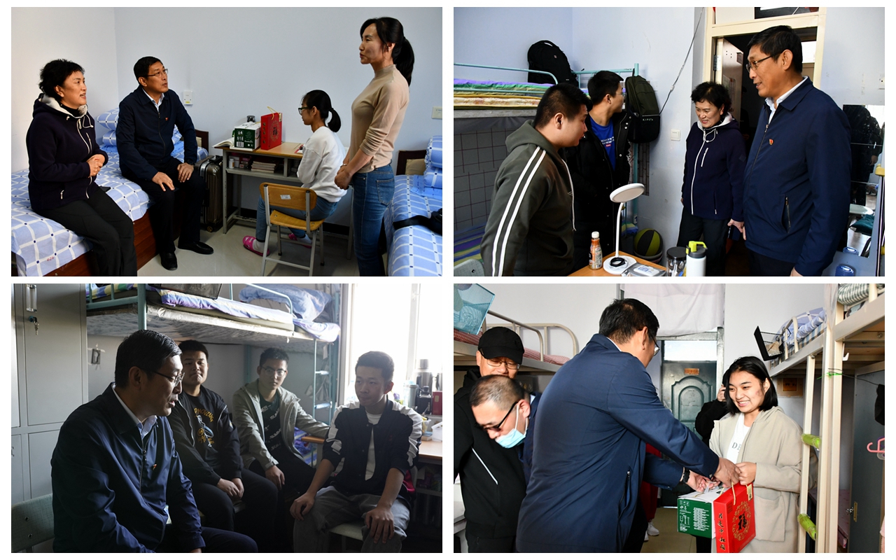走访中,党委副书记张焕强与家庭经济困难学生亲切交谈,详细了解他们的家庭基本情况、在校学习和生活近况及入校学习的适应情况,勉励他们正视困难,战胜困难。国家、社会和学校十分关心关注家庭经济困难生,学校构建了国家奖助、社会捐助、学校补助和个人自助“四位一体”的资助体系,保证“决不让一个学生因家庭经济困难而失学”。 希望大家珍惜韶华,奋发有为,励志成才,书写出无愧于时代、无愧于历史的人生华章。同时,希望同学们理解配合学校疫情防控工作,严格校园管控是对同学们生命健康的高度负责,同学们还要提高防护意识,继续做好个人防护。