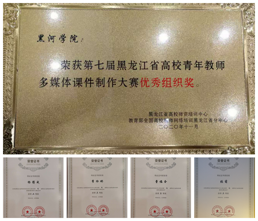 本网讯(特约记者 李娟)11月8日,黑龙江省高校师资培训中心和教育部全国高校教师网络培训黑龙江省分中心联合举办的“第七届黑龙江省高校微课教学比赛”和“第七届黑龙江省高校青年教师多媒体课件制作大赛”颁奖仪式在哈尔滨举行,我校四位教师获奖,学校荣获大赛优秀组织奖。