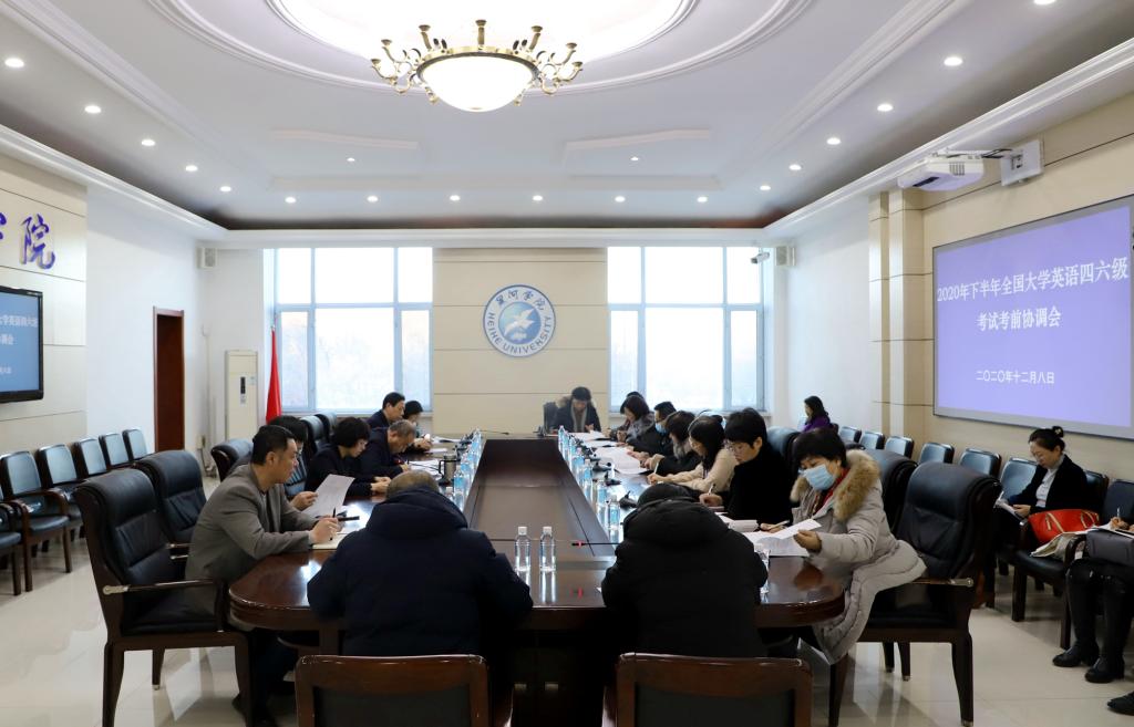 本网讯(实习记者 周春晓 摄影 刘韵狄)为确保疫情防控常态化下2020年下半年全国大学英语四六级考试安全有序进行,学校专门成立考试工作领导小组,详细规划防疫、考务工作安排,并于12月8日和12月11日分别召开2020年下半年全国大学英语四六级考试考前协调会和考务工作培训会。