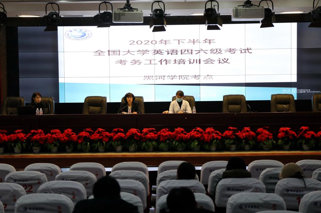 考务工作培训会上,教务处负责人苏丹传达了黑龙江省招生考试委员会发布的《新冠肺炎疫情防控常态化下黑龙江省招生考试院社会考试组考防疫工作指导方案》精神,强调了本次考试的注意事项,就监考工作提出明确要求;校医院医生李雪梅、教务处副处长李建荣分别为与会人员作防疫知识和考务操作规程培训。