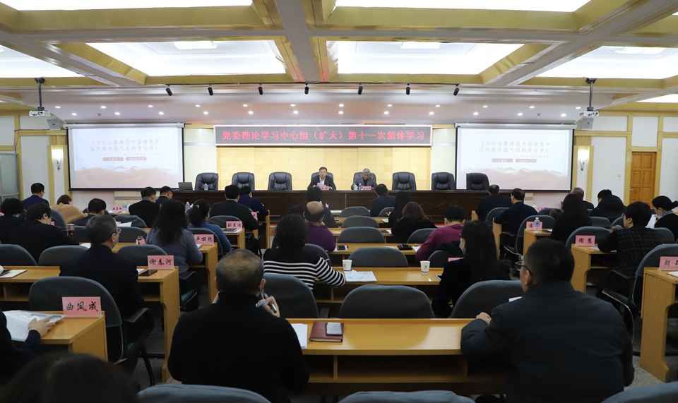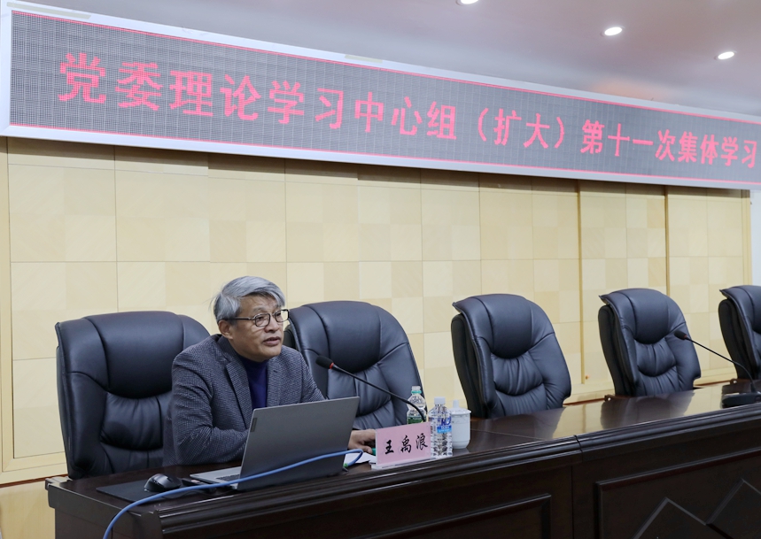 本网讯(记者 赵宇 摄影 周春晓)12月16日,学校在明德楼五楼多功能厅召开党委理论学习中心组(扩大)第十一次集体学习会,党委理论学习中心组全体成员及学校副处级以上干部参加学习,党委书记王刚主持集体学习。