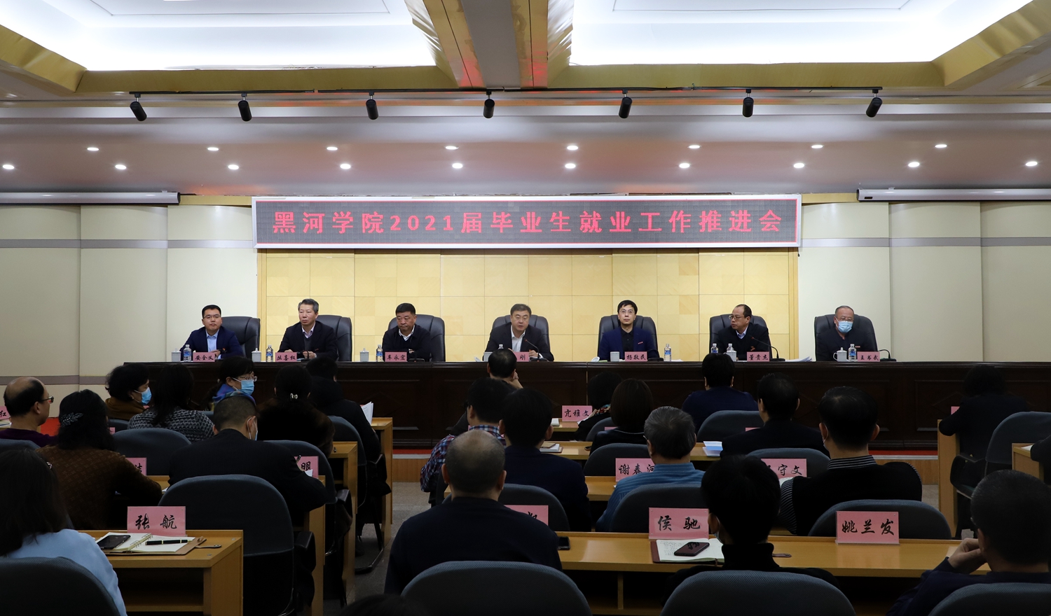本网讯(记者 赵宇 关月 摄影 周春晓)为深入贯彻党的十九届五中全会精神、省委十二届第八次会议精神,落实省教育厅、省人力资源社会保障厅2021届全省普通高校就业创业工作网络视频会议部署,做好我校2021届毕业生就业工作,12月23日,学校在明德楼五楼多功能厅召开2021届毕业生就业工作会议,学校领导班子成员,各学院班子成员、系主任、学团办主任、辅导员及各部门负责人,教务处、学生工作部、团委班子成员,招生就业处全体人员参加会议。会议由党委委员、纪委书记、省监委驻黑河学院监察专员董贵杰主持。