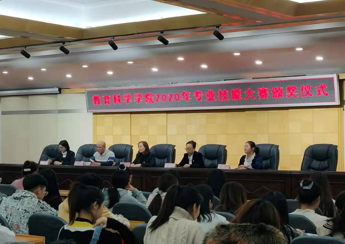 本次比赛包括学前教育专业手工制作比赛、课件制作比赛,小学教育专业钢笔字比赛、课件制作比赛,分为班级预赛、学院决赛两个阶段。2018级、19级、20级440名学生参与了班级预选赛,最终共有学前教育专业114名学生进入决赛。比赛中,学生们各显风采,手工制作巧妙别致,钢笔字公正规范,课件制作实用精美,展现了学生过硬的专业素质和良好的精神风貌。23日,教育科学学院在明德楼五楼报告厅举行了专业技能大赛颁奖仪式。教育科学学院院长张玉萍、党总支负责人包宇、副院长王国贤为12名一等奖获奖学生、23名二等奖获奖学生、37名三等奖获奖学生、42名优秀奖获奖学生颁发了获奖证书。