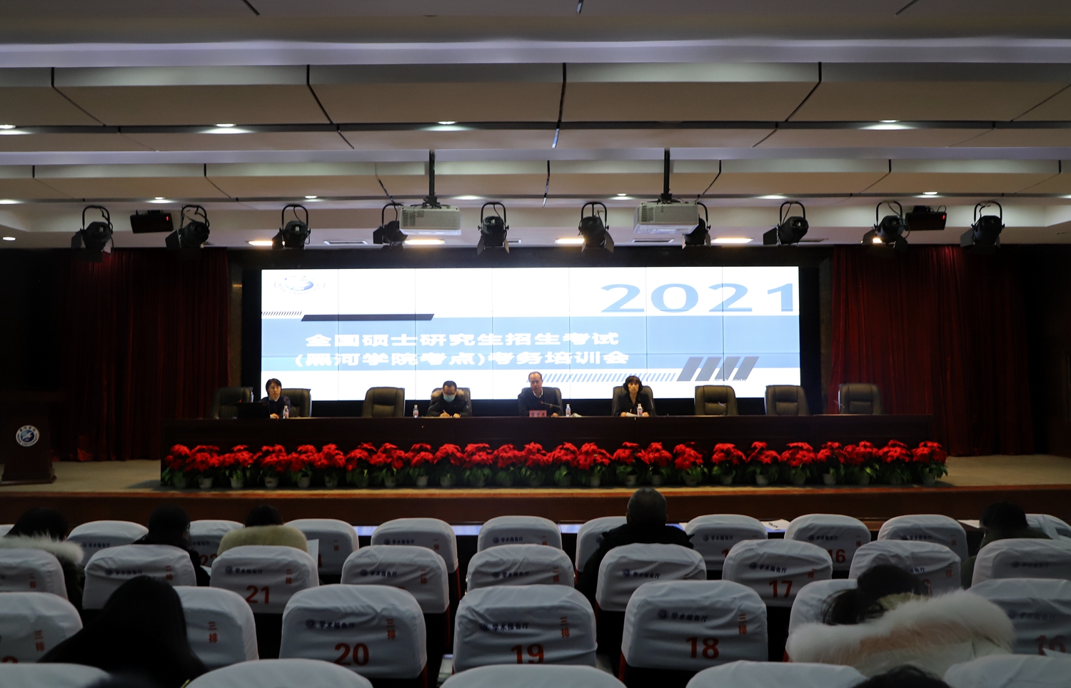 12月25日下午,学校召开2021年全国硕士研究生招生考试黑河学院考点监考教师培训会。校医院副院长舒展、教务处副处长李建荣分别为全体监考教师进行防疫相关知识培训和监考教师考务工作培训。