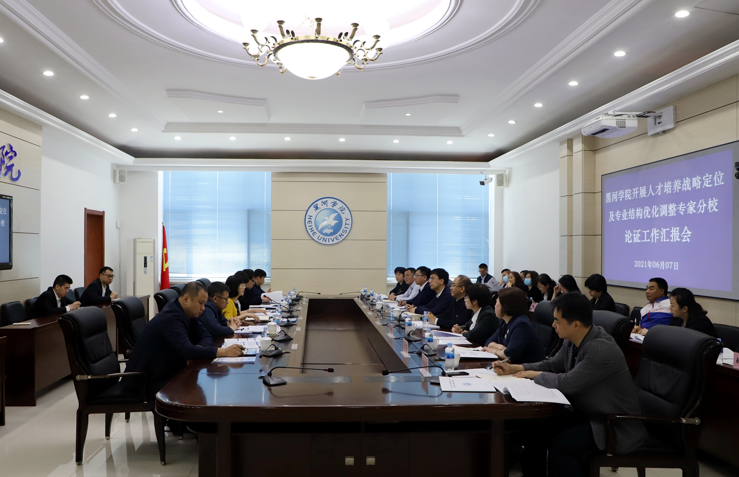 本网讯(记者 关月 摄影 周春晓)6月7日,按照黑龙江省教育厅对地方属普通高校人才培养战略定位及专业结构优化调整专家分校论证(以下简称“双论证”)工作的部署,由哈尔滨师范大学副校长李庆霞带队的专家组一行6人对我校“双论证”工作开展情况进行考查指导。校长杨敬民、副校长许海深在明德楼二楼会议室同专家组召开汇报会,相关部门和各二级学院负责人参加会议。