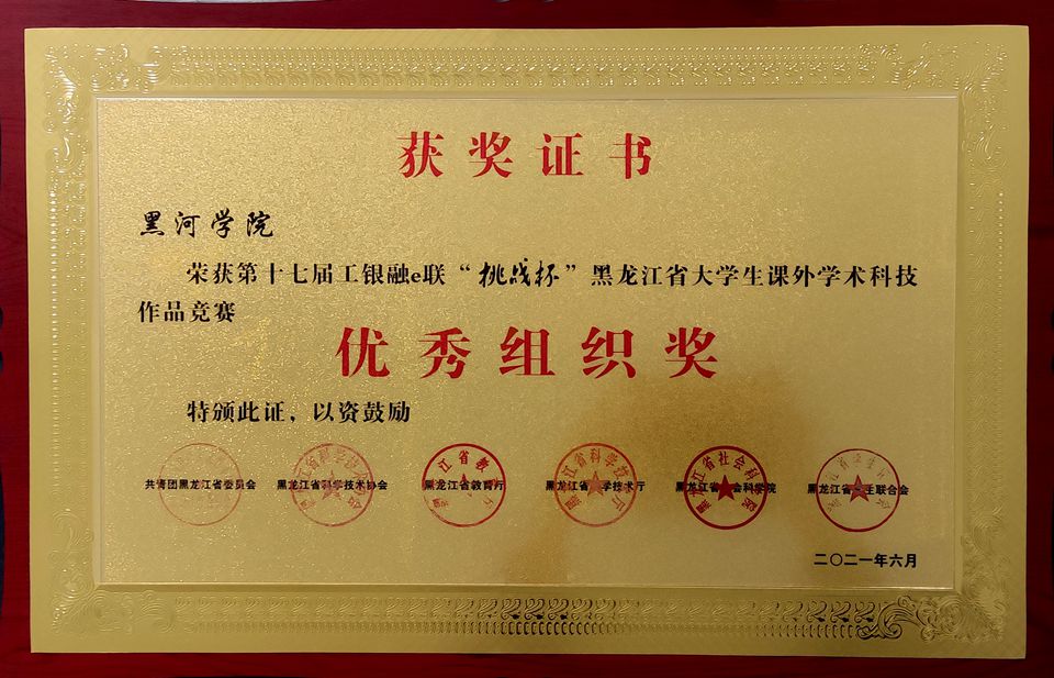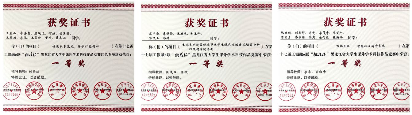 本网讯(特约记者 潘潇)近日,由共青团黑龙江省委、省科学技术协会、省教育厅、省科技厅、省社会科学院、省学生联合会主办的第十七届工银融e联“挑战杯”黑龙江省大学生课外学术科技作品竞赛终审工作圆满结束。我校参赛团队以高质量的项目内容,良好的精神风貌,在本次竞赛中取得了优异成绩。