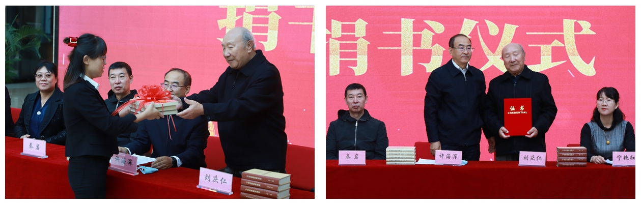 会上,刘庆仁教授向图书馆馆员代表赠送其个人收藏图书1401册,期刊238册。副校长许海深代表学校向刘庆仁教授颁发了捐赠证书,感谢刘庆仁教授退而不休,一直心系学校发展、支持关心图书馆建设。