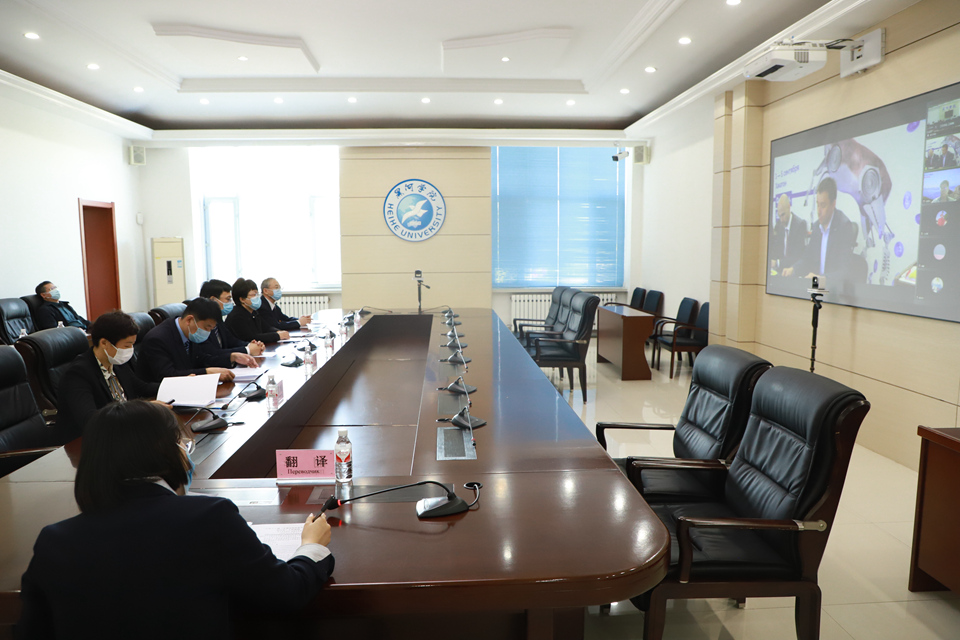 本网讯(特约记者 张雪梅 摄影 郭瑞)5月26日,由中国黑河学院、俄罗斯布拉戈维申斯克国立师范大学联合主办,我校外国语学院、远东研究院、黑龙江省俄罗斯东欧中亚学会俄罗斯学研究分会、黑龙江省中俄历史与文化学术交流基地承办的第十二届“中俄合作历史与前景”学术研讨会在线上顺利召开。来自中国社会科学院、北京师范大学、黑龙江大学、黑龙江省社会科学院、黑河学院、莫斯科国立大学、圣彼得堡国立大学、俄罗斯科学院、布拉戈维申斯克国立师范大学等9所中俄高校和科研院所的专家学者与会。学校党委副书记、院长杨敬民,副院长谢慧及外国语学院、远东研究院、国际交流合作处负责人与相关学科专业教师代表在明德楼二楼会议室参加会议。