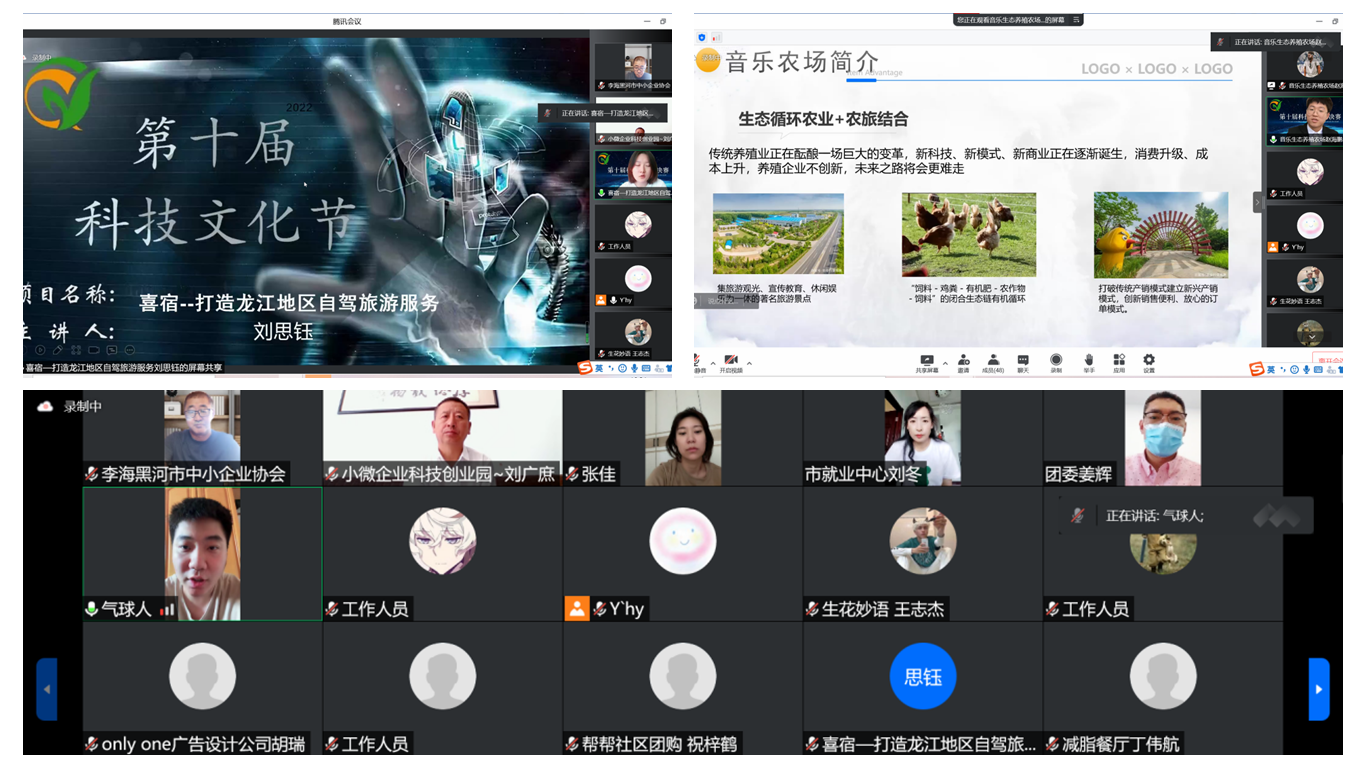 本网讯(特约记者 潘潇)6月19日,由校团委、创新创业学院联合举办的黑河学院第十届大学生科技文化节创业组和创新组终审决赛通过线上评审的方式举行。
