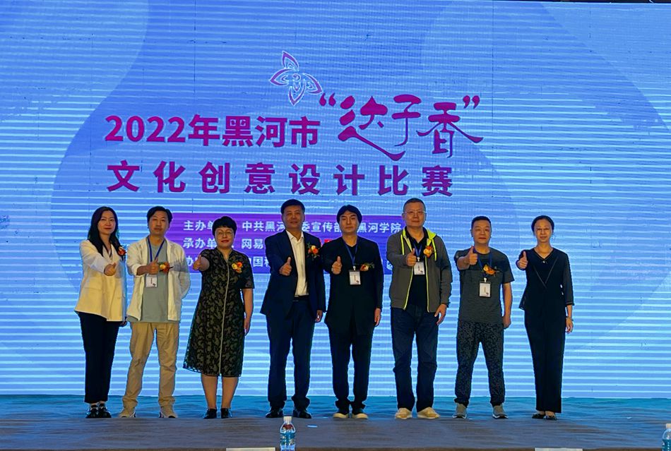 本网讯(记者 关月 特约记者 于永明)为推动黑河市创意设计产业高质量发展,打造优质文化创意设计品牌,8月14日,由中共黑河市委宣传部和我校主办,网易黑龙江承办,中国移动通信集团黑龙江有限公司黑河分公司协办的“达子香”文化创意设计比赛颁奖典礼在黑河市银建建国酒店举行。黑河市委常委、宣传部部长狄恒,哈尔滨师范大学美术学院副院长张红松,黑龙江大学艺术学院副院长匡石,国家一级美术师刘健一,黑龙江省电影电视家协会副主席、哈尔滨画院院长肖伟,黑龙江省一级注册设计师、哈尔滨学院艺术与设计学院艺术设计系教师、党支部书记王惠及我校党委委员、副校长谢慧出席本次颁奖典礼。
