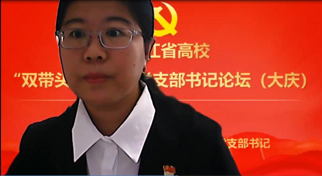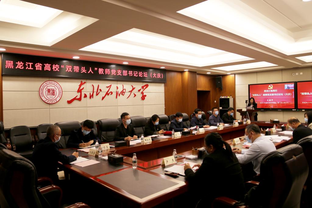 本网讯(特约记者 梁云婴)10月26日下午,黑龙江省高校“双带头人”教师党支部书记论坛在东北石油大学举行,本次论坛采取线上线下相结合方式进行,东北石油大学、黑龙江八一农垦大学、大庆师范学院、哈尔滨医科大学大庆校区、大庆职业学院、大庆医学高等专科学校线下参会,我校与黑龙江能源职业学院线上参会。我校党委组织部工作人员、“双带头人”教师党支部书记参加了会议。
