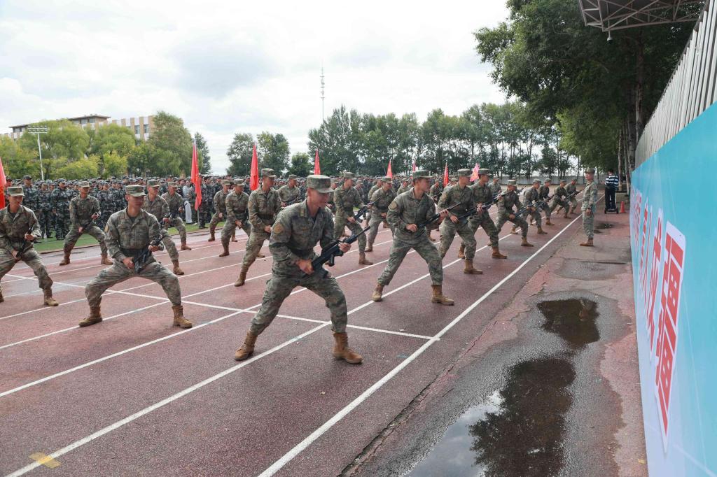 承训官兵带来的刺杀操表演成为全场焦点,口号声震彻运动场,整齐划一的战术动作与刚劲有力的格斗招式,生动展现了中国军人的铁血作风,让现场新生更直观感受到军队纪律与执行的震撼。