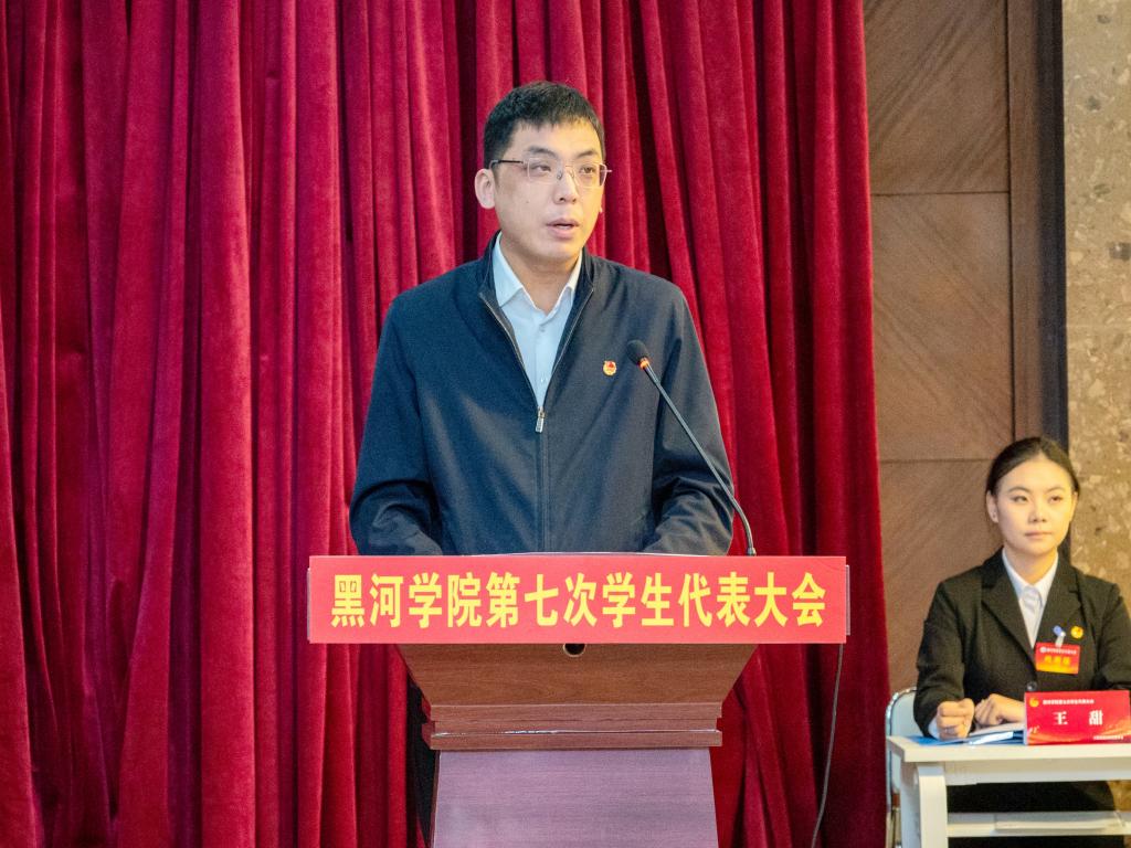 11月30日,学校第七次学生代表大会在求知楼报告厅召开。大会听取、审议并表决通过了相关工作报告,选举产生了我校第二十九届学生会主席团成员。共青团黑河市委副书记秦思璐,校党委副书记姜国玉出席并讲话,宣传统战部、后勤管理处、教务处、招生就业处、学生工作部相关负责人,共青团第二届委员会委员及224名代表参加本次会议。