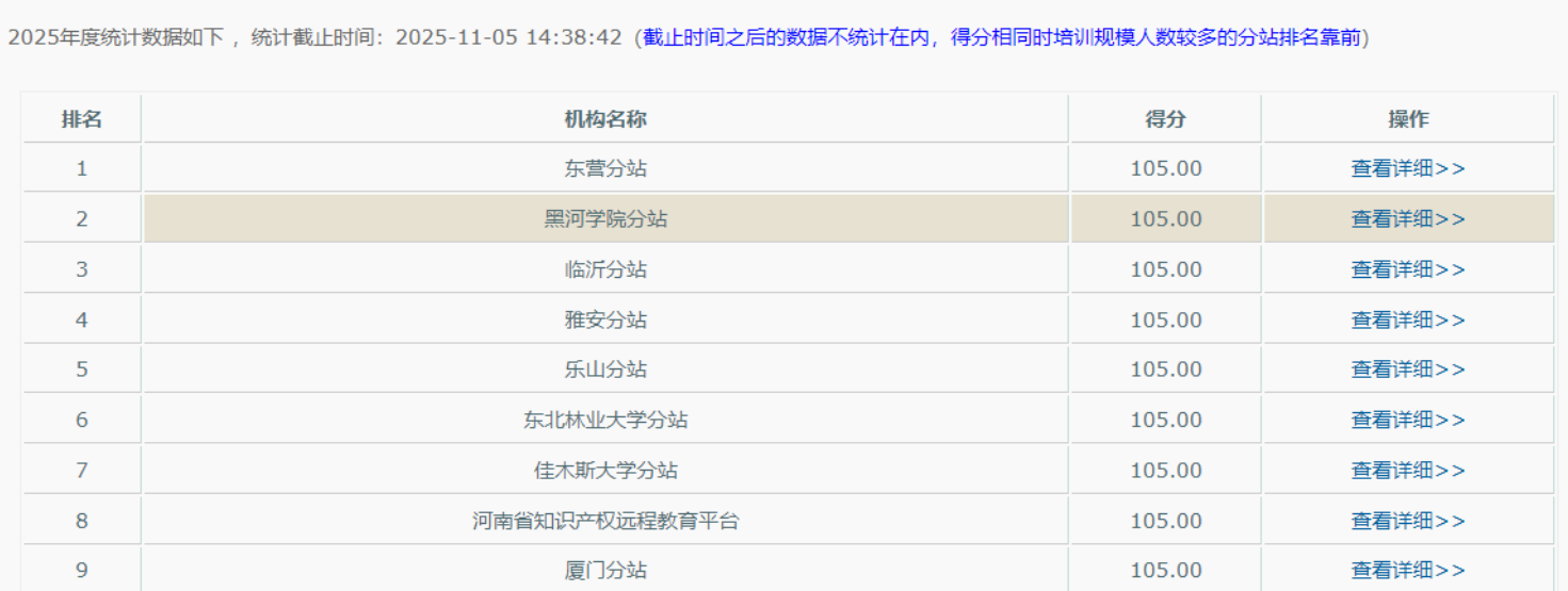 学校认真落实全会关于知识产权工作的各项要求,切实增强全社会尊重和保护知识产权意识,我校国家知识产权公共服务网点依托黑龙江省知识产权远程教育平台——黑河学院分站组织开展了2025年度知识产权远程教育培训。此次培训工作黑河学院分站在205个子平台培训管理评比中荣获全国第2名、全省第1名的好成绩,总培训人次达12000余人,培训规模再上新台阶。