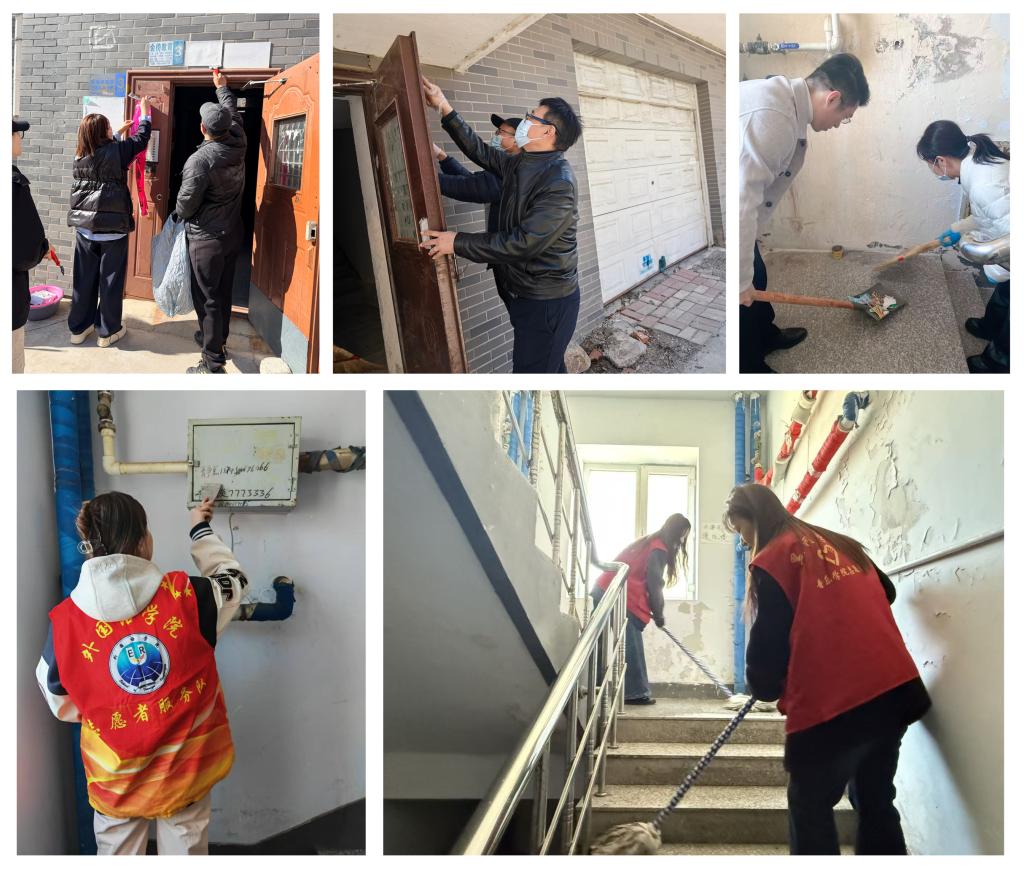 活动中,师生分工协作,对小区地面、楼道楼梯进行全面清扫,清理庭院内堆积杂物,并铲平清理绿化带积雪,以实际行动美化居住环境、改善卫生面貌。