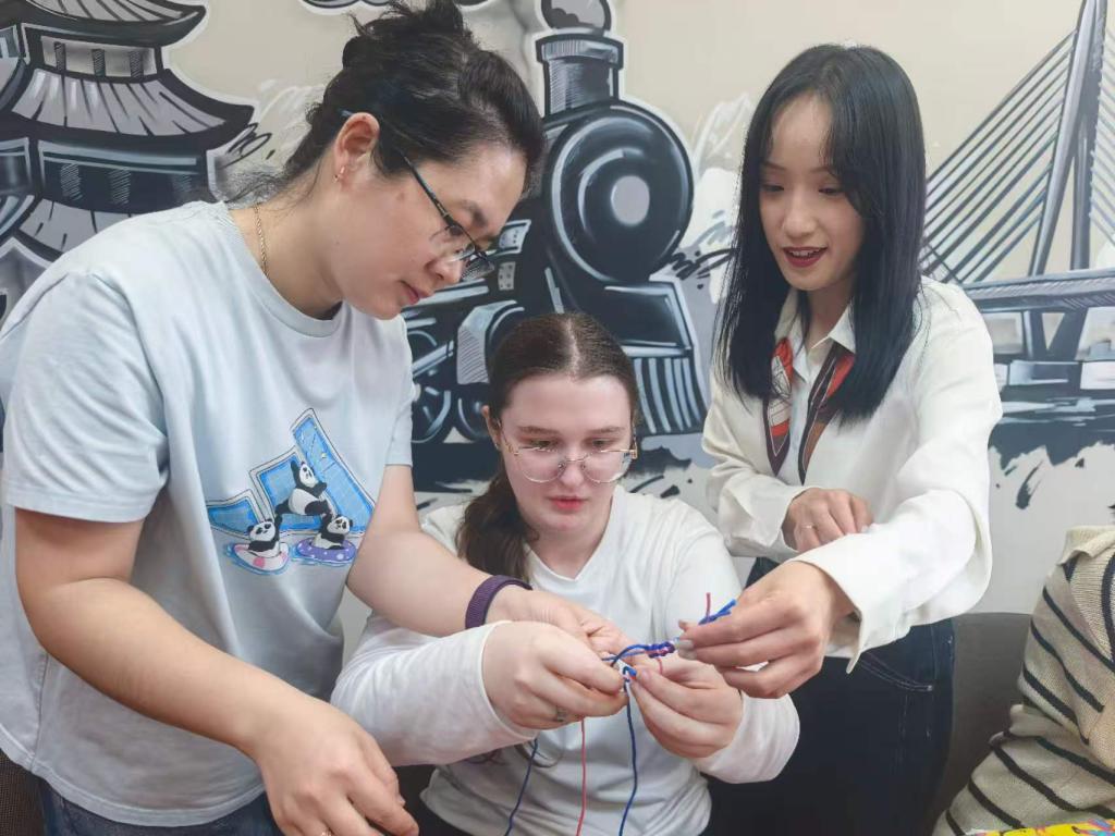 活动通过“笔墨”与“绳结”搭建起感知中文的桥梁。书法体验区内,教师讲解汉字结构、演示运笔技巧,指导参与者书写“和平”“友谊”“梦想”等词汇,帮助他们在笔墨间领略汉字之美与文化内涵。中国结体验区同样气氛热烈,教师现场演示“如意结”“吉祥结”等编法,阐释其中“团结”“联结”等文化寓意,让参与者在动手编织中理解中文“多彩”的表达方式。