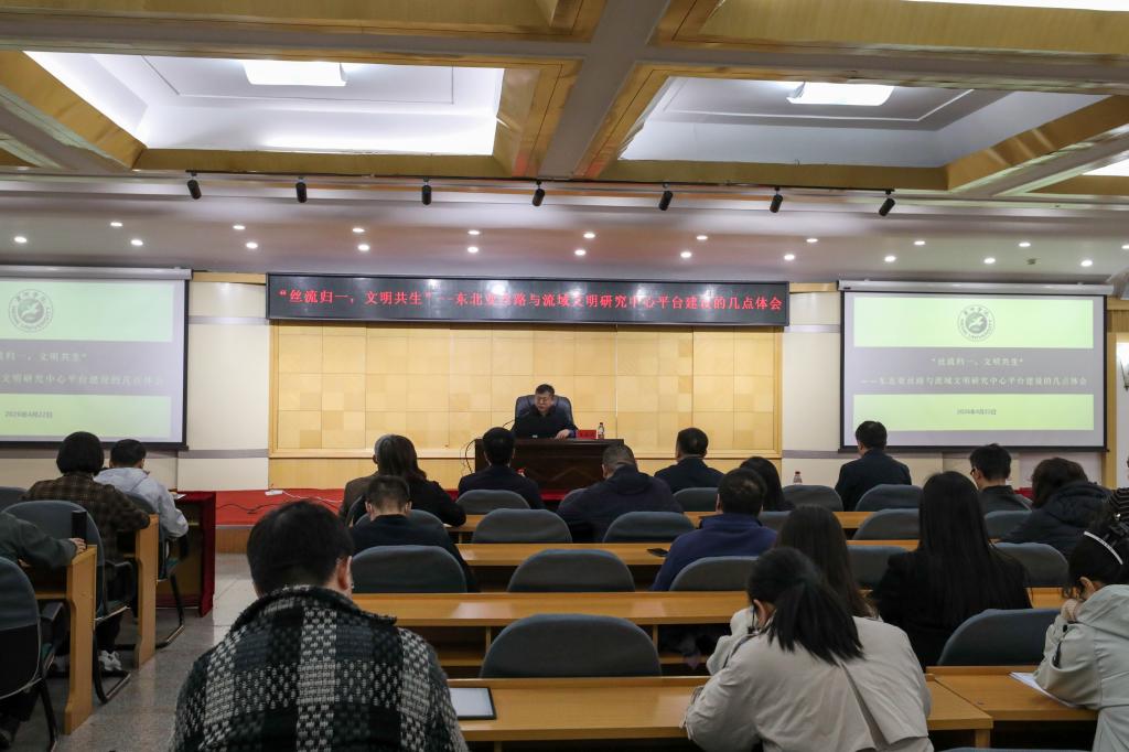 王禹浪教授以“‘丝流归一,文明共生’——东北亚丝路与流域文明研究中心平台建设的几点体会”为核心主题,结合自身深耕学术领域的实践经历,从学理依据、国家战略需求、特色定位及团队组建等关键维度,系统阐释了科研平台建设的核心逻辑与实践路径。