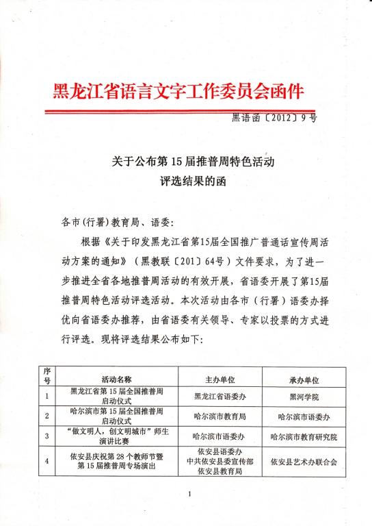 此次荣誉是黑龙江省语委对我院开展推普周活动的充分肯定,也将有利地推动我院语言文字工作更深入的开展。