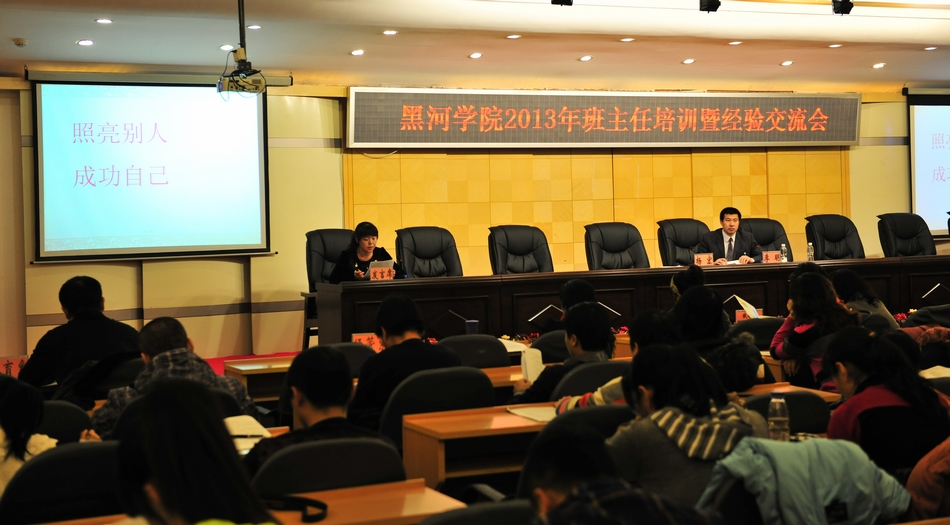 本网讯(记者 张雪梅 摄影 姜辉)1月10日,学院2013年班主任培训暨经验交流会在综合楼五楼多功能厅召开,学院党委副书记杨宏出席会议,学工部全体人员、各系(中心)党总支书记及全体班主任参加会议。