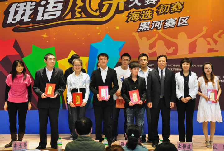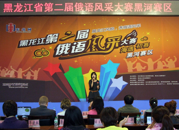 本网讯(学生记者 张云红 摄影 林志超 李项堃)5月14日,在《中俄睦邻友好条约》签署10周年之际,由省委宣传部、省教育厅、中国国际广播电台联合主办,黑龙江东北网络台承办,黑河学院、黑河广播电视台协办的“黑龙江第二届俄语风采大赛”之黑河首站赛在黑河广播电视台演播厅隆重举行。