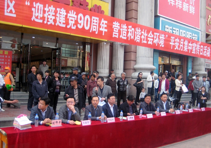 本网讯(通讯员 梁策)5月18日上午,李廷栋主席率领保卫处综治办同志代表学校参加了黑河市、爱辉区“迎接建党九十周年,营造和谐社会环境”宣传日活动。